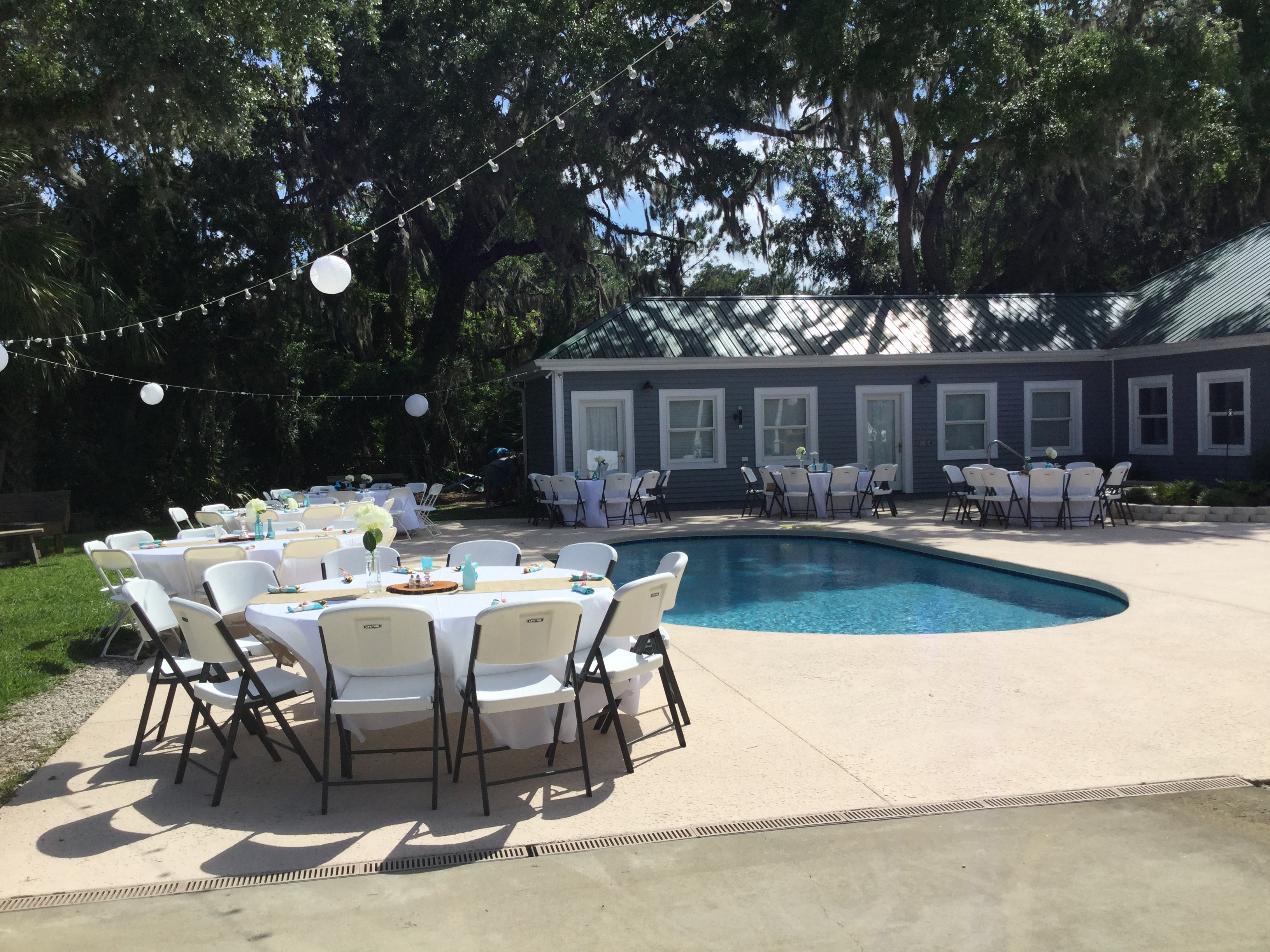 Hudson Creek Lodge is an ideal destination for weddings and receptions, family reunions, vacations, retreats and special events. The lodge is located on 18 acres on Hudson Creek in McIntosh County. The spectacular eastern view overlooks the marsh estuaries, tidal creeks and Sapelo Island with picturesque sunrises. The property consists of a 4300 square foot house, separate pool house rooms, party room, pool and pond with a pavilion. The main house currently sleeps 11 and the three pool house rooms each sleep two. The pool house rooms can be rented separately from the house. For a wedding, lodging, rehearsal dinner, ceremony and reception at one location make the event less hectic.